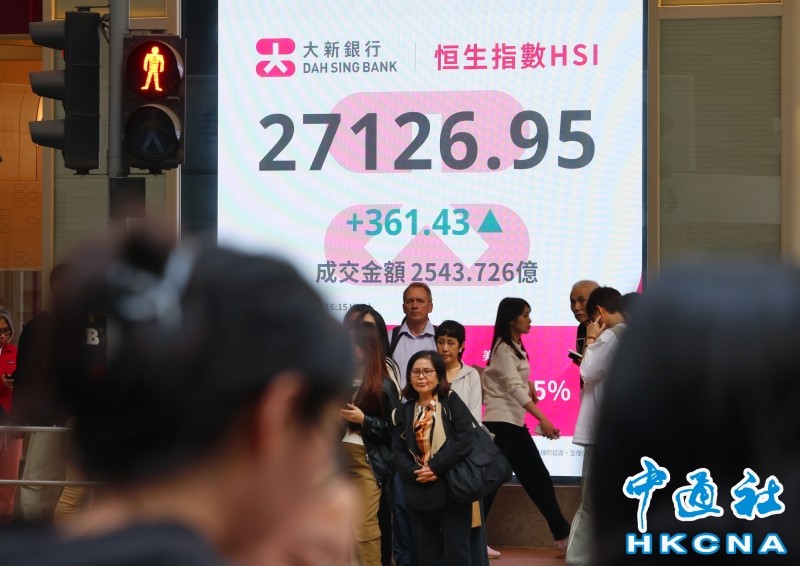 香港中通社圖片 當天,恆指高開97點,隨後升幅擴大,一度升逾420點,高見27188點;大市當日收報27126點。國企指數升97點或1.1%,收9244點;恆生科技指數升28點或0.5%,收5754點。 藍籌股逾半數上升,金融股顯著反彈,中國人壽升6%;匯控升近2.7%;友邦保險升4.1%;中國平安升2.3%。恆隆地產跌4.5%,是表現最差藍籌。 中國內地零食連鎖品牌“零食很忙”及“趙一鳴零食”的母企“鳴鳴很忙”,將於28日正式在港掛牌,券商平台暗盤時段表現強勁。該股在富途暗盤收漲76.2%,報416.8港元,每手100股,不計手續費,一手轉18020港元。 香港股票分析師協會副主席郭思治對中通社記者分析,從走勢上看,大市已漸呈試頂趨勢,所指之頂暫分別為1月15日高位27206點,及去年10月2日高位27381點。以本月低位為2日25717點計,高位一般均會在中旬尾或下旬時才出現,而照目前大市表現,大市未有機會在本月底前出現突破。單從形勢上看,技術上有利於2月上旬發展。(完) 【編輯:林曉惠】
