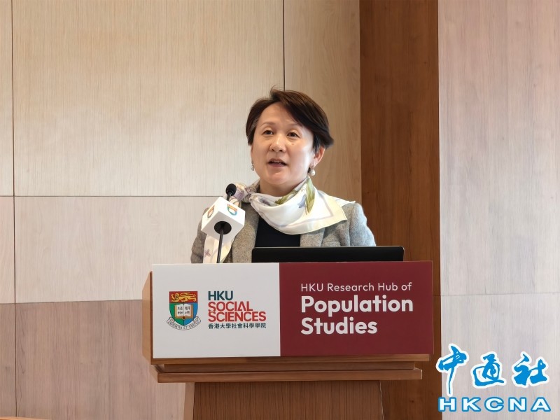 圖為香港大學秀圃老年研究中心總監及香港大學人口研究中心副總監樓瑋群。香港中通社記者 梁嘉軒攝 調查委託了社會政策研究有限公司在2024年9月至2025年3月期間執行,共取得4051份有效樣本。香港大學秀圃老年研究中心總監及香港大學人口研究中心副總監樓瑋群,當天分享了有關生育、家庭照護及健康與福祉的研究結果。