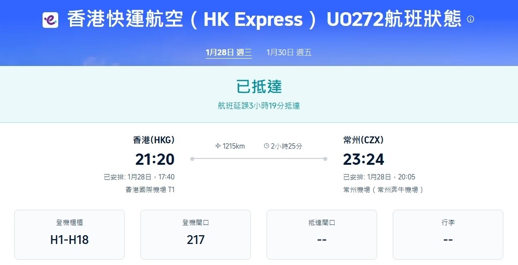 香港新聞網1月30日電 近日,由香港飛往江蘇常州的一艘航班在進入起飛跑道前,有一名女子情緒激動地聲稱“飛機要爆炸”,並要求立即落機。受此影響,該航班延誤逾3個小時。