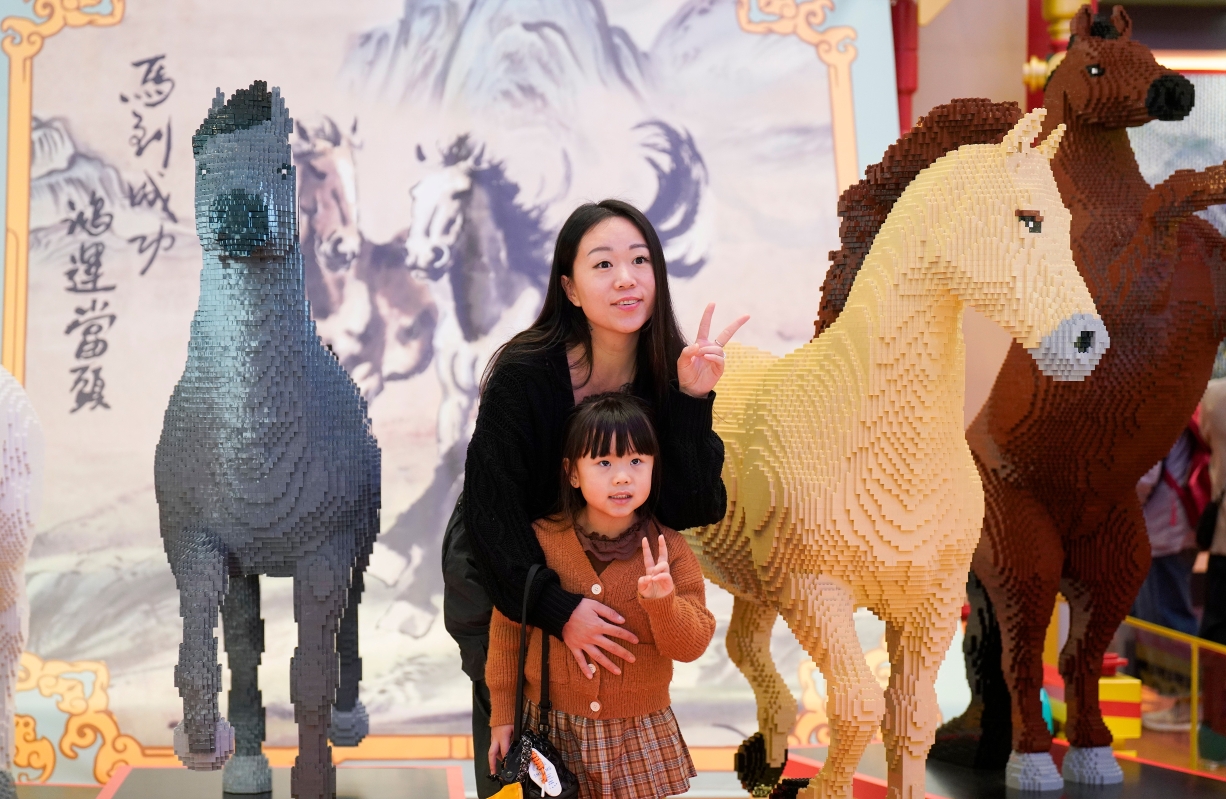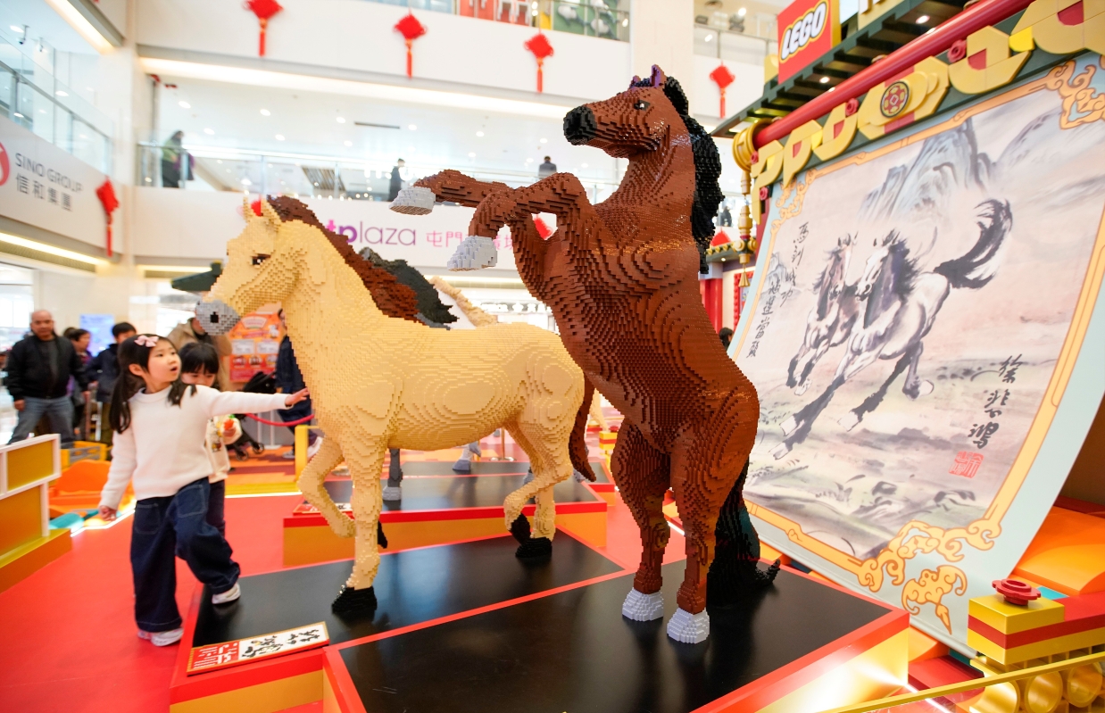香港新聞網2月1日電(記者 陳奕啟 ) 屯門市廣場聯乘 LEGO香港共同打造新春駿藝樂園,以 LEGO顆粒重現“近代中國國畫之父徐悲鴻大師”的經典作品《六駿圖》,透過近40萬粒顆粒砌出兩組巧奪天工、磅礴奔騰的駿馬藝術作品,象征新一年馬到功成!樂園在1月30日至3月4日對公眾開放。2月1日週日,展覽現場吸引市民爭相與駿馬藝術作品合影留念。