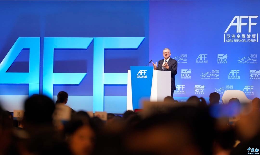 1月26日,第十九屆亞洲金融論壇在香港會議展覽中心舉行。歐盟執委會前主席兼葡萄牙前總理、高盛國際顧問委員會主席Dr JoséManuel Barroso作主題演講。(香港中通社記者 陳奕啟 攝)