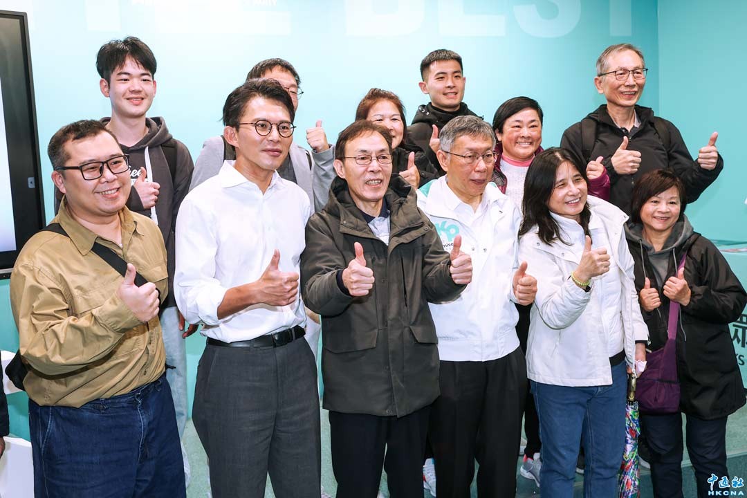 台灣民眾黨主席黃國昌2月1日正式成立新北市長競選總部,前黨主席柯文哲、中廣前董事長趙少康親自到場支持,黃國昌期盼自己成為新北市長最好的人選,並承諾選民給他四年,他會帶來進步,競選總部也設有健身器材,黃國昌也親自示範健身動作,強調運動的重要。圖為民眾黨主席黃國昌(前左二)成立新北市長競選總部,前黨主席柯文哲(前右三)到場支持。 香港中通社圖片