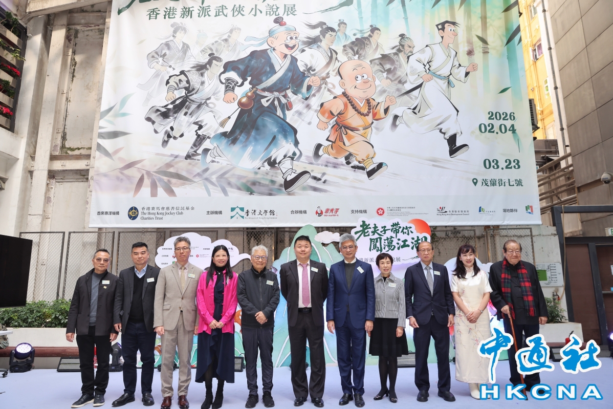 老夫子帶你闖蕩江湖:香港新派武俠小說展在香港文學舘開幕香港新聞網2月4日電 由首席惠澤機構香港賽馬會慈善信託基金捐助,香港文學舘與老夫子哈媒體公司聯合主辦,並獲香港特別行政區政府文化體育及旅遊局、香港藝術發展局、香港市區重建局鼎力支持的“老夫子帶你闖蕩江湖——香港新派武俠小說展”於2月4日假灣仔茂蘿街七號正式揭幕,並舉行開幕禮。