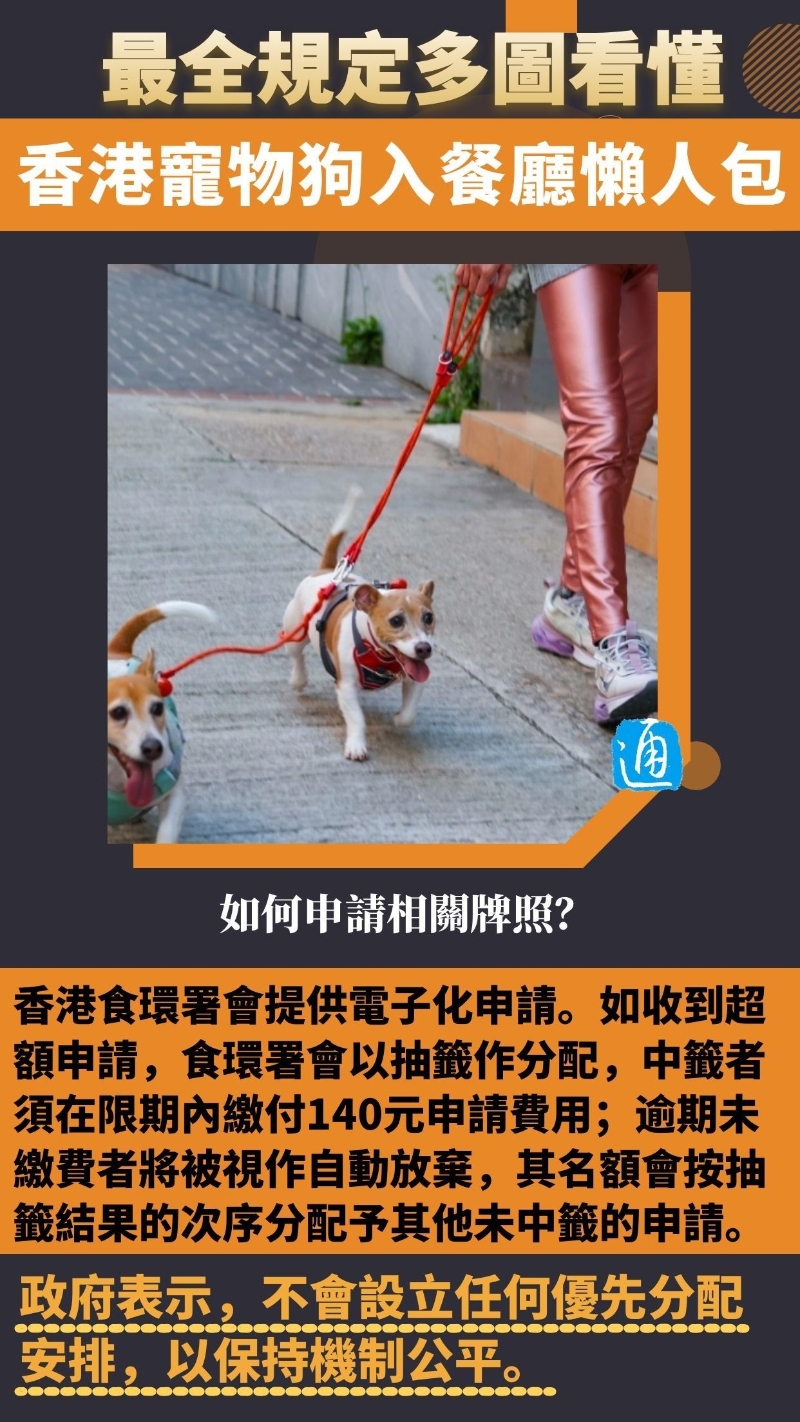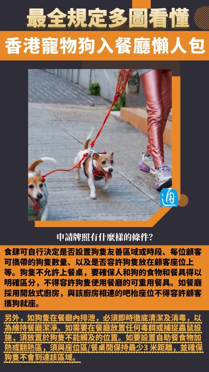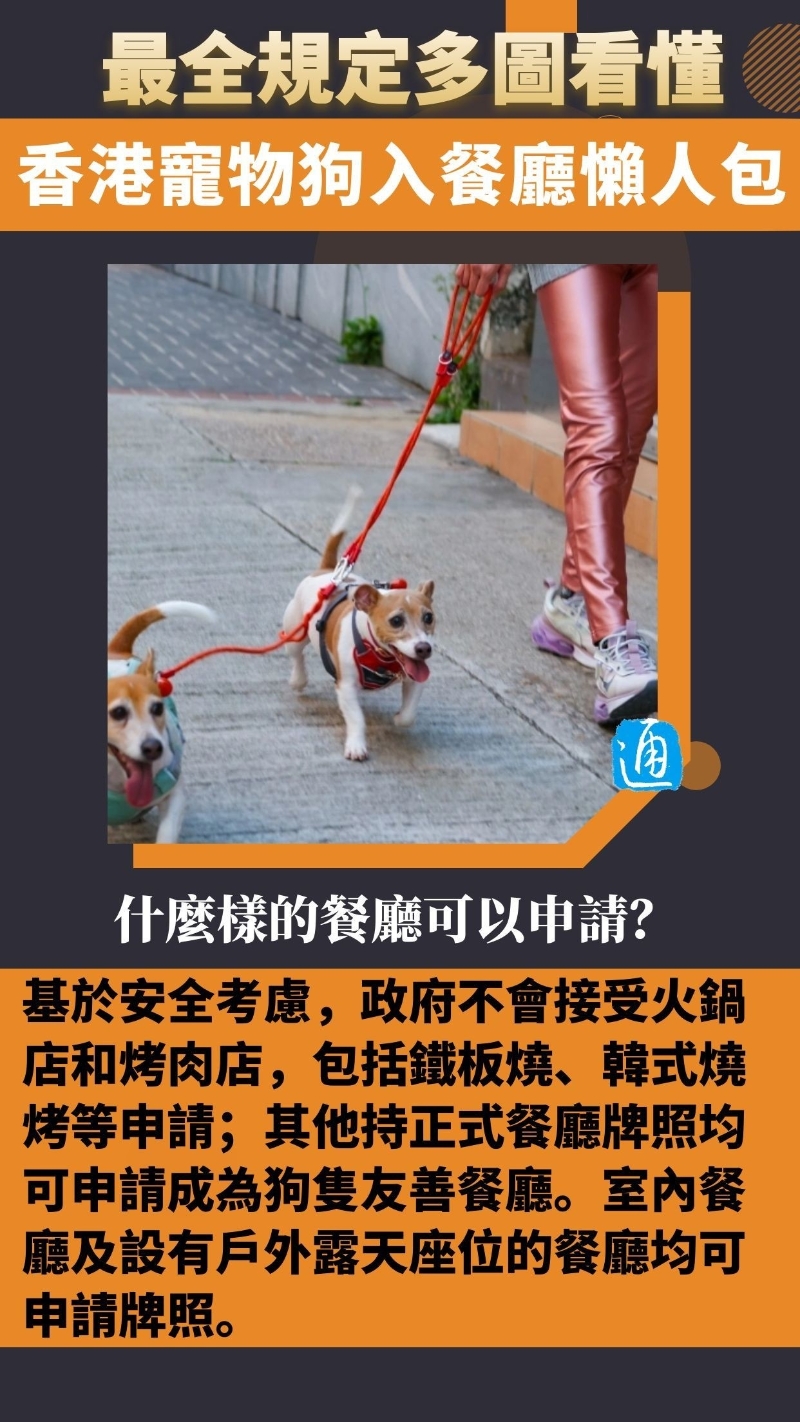 政府發言人透露,今年年中將推出首階段食肆申請,名額500個至1000個,但食肆及狗主必須遵守多項要求。
