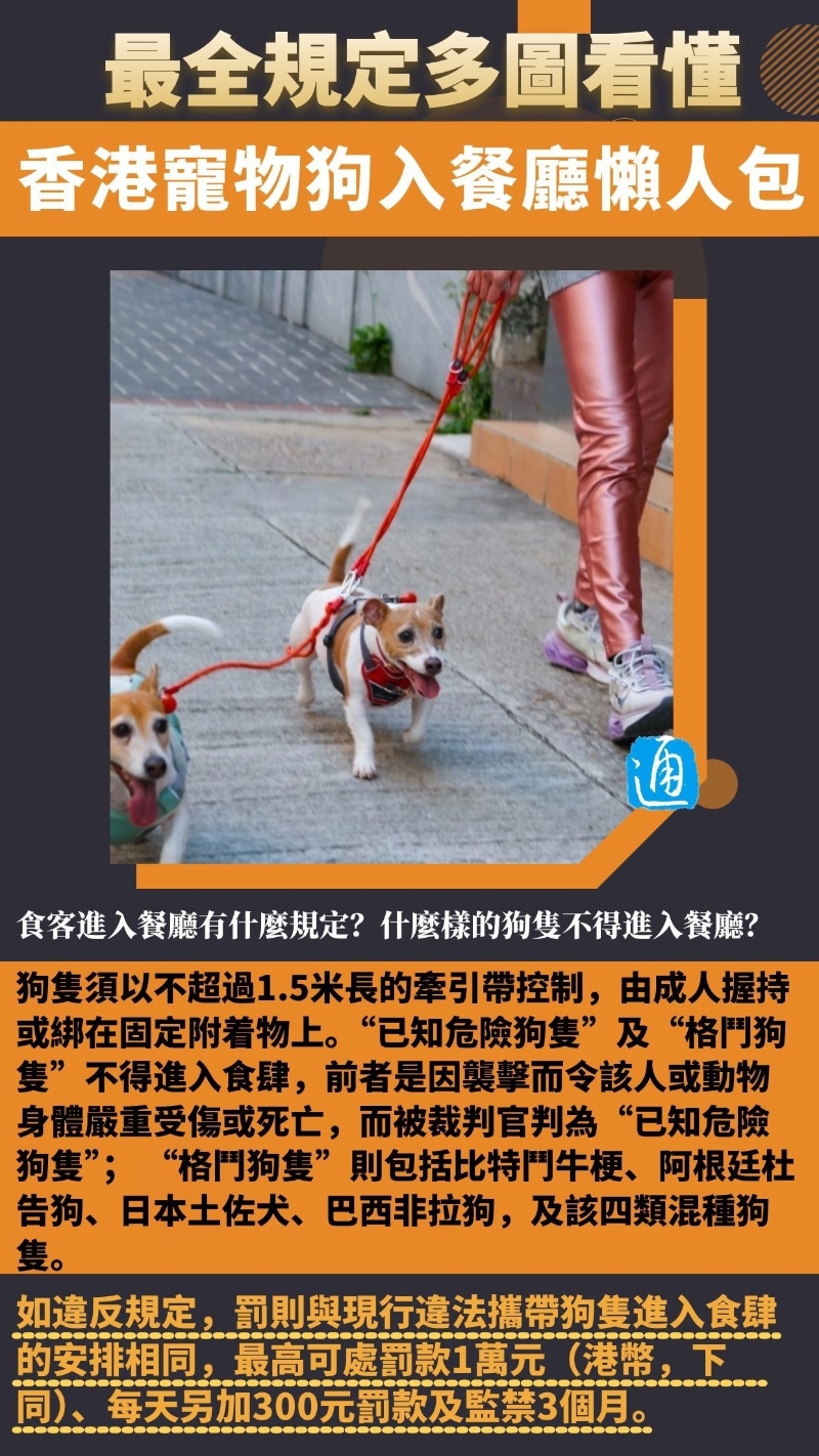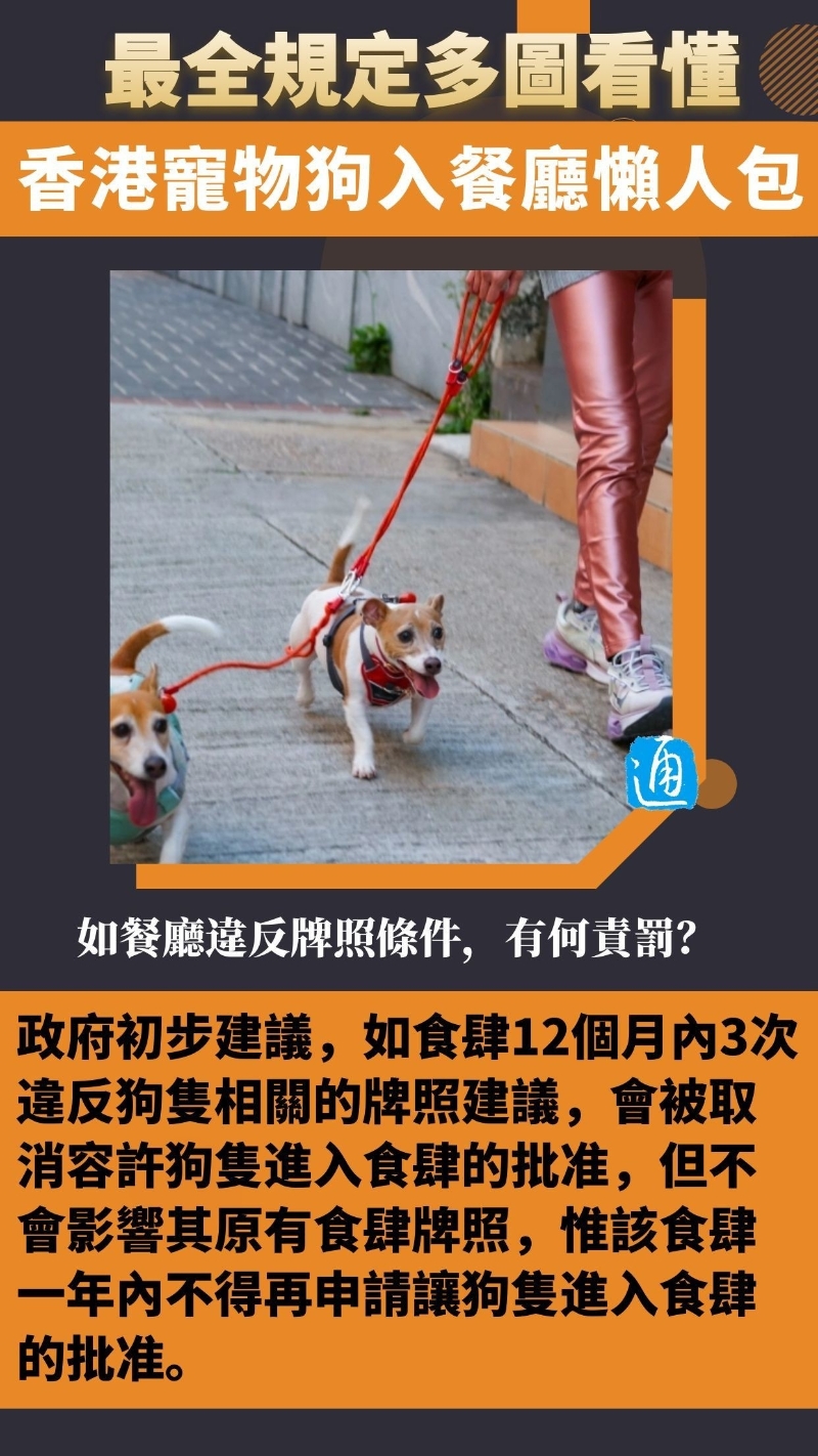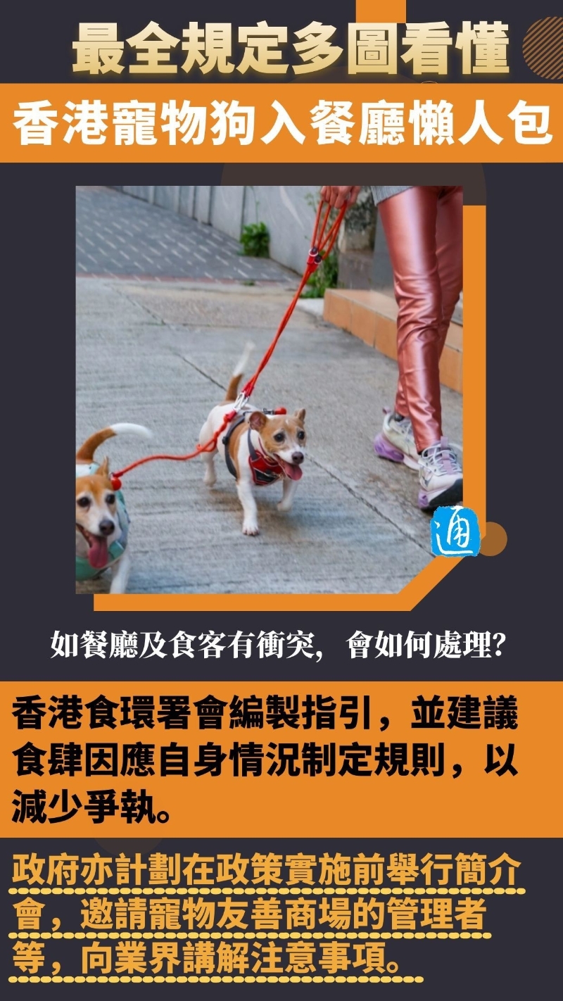 政府發言人透露,今年年中將推出首階段食肆申請,名額500個至1000個,但食肆及狗主必須遵守多項要求。