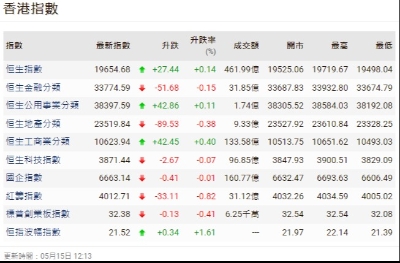 港股收市三大指數齊升 恆指升37點
