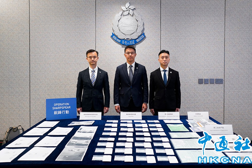 香港新聞網2月5日電(記者 陳奕啟)香港入境處聯同廣東省公安廳出入境管理總隊及珠海市公安出入境管理部門,於去年10月至今年1月展開代號“銳鋒”的聯合行動,成功搗破一個跨境偽造證件及安排內地人士來港非法工作的犯罪集團,共拘捕119人。此次偽造身分證數目和拘捕人數屬同類案件中最多。