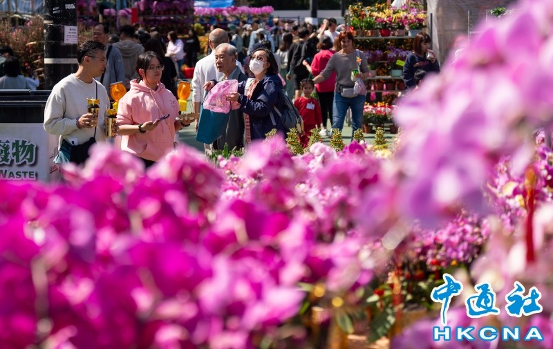 香港中通社2月11日電(香港中通社記者 徐嘉儀)農曆新年將至,買一盆賀年花,迎新一年好運氣。香港14個年宵市場2月11日同步開鑼,吸引大批市民前往選購賀年花卉和節慶物品。