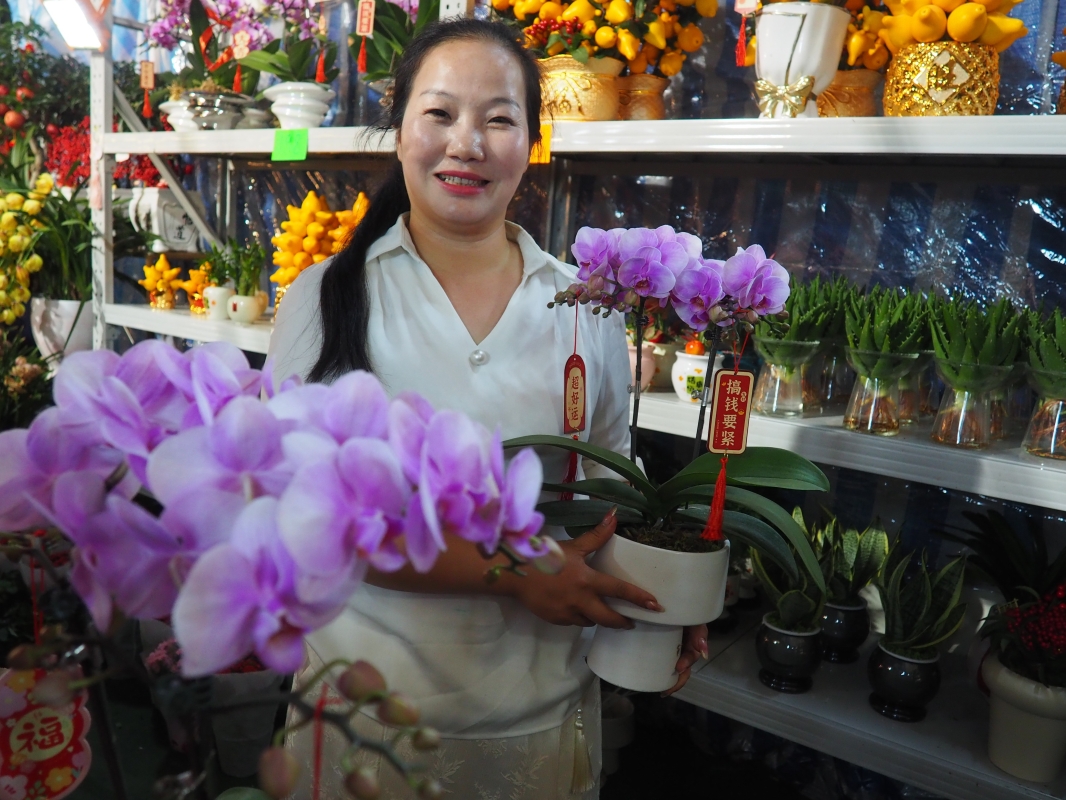 水仙花、長壽果、蘭花都是暢銷的年花。