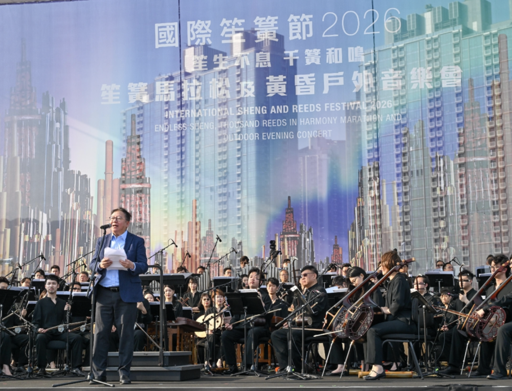 香港新聞網3月22日電 3月22日,啟德體育園上演“笙生不息—千簧和鳴”笙簧馬拉松。香港中樂團廣邀中西方各類簧片樂器愛好者同台合奏,共同刷新世界紀錄。 參與演出者吹奏的樂器涵蓋笙、蘆笙、葫蘆笙、葫蘆絲、口琴及風笛,展現中西樂韻交融的磅礴氣勢。是次盛事成功吸引逾千名4歲至87歲參加者,其中20歲以下的參與比例超過一半,盡顯中樂在新生代中薪火相傳的強大生命力。 特區政府政務司司長陳國基在國際笙簧節2026開幕禮致辭指,今年是國家“十五五”規劃開局之年,推動文化和旅遊深度融合,促進中華文化傳承,正是當中一個重要發展方向。期待香港中樂團繼續推陳出新,以高品質的文化旅遊活動,打造具影響力的國際品牌,向世界展示中華文化的深厚底蘊和創新活力,進一步深化國際文化交流合作,協助鞏固香港作為中外文化藝術交流樞紐的獨特地位。