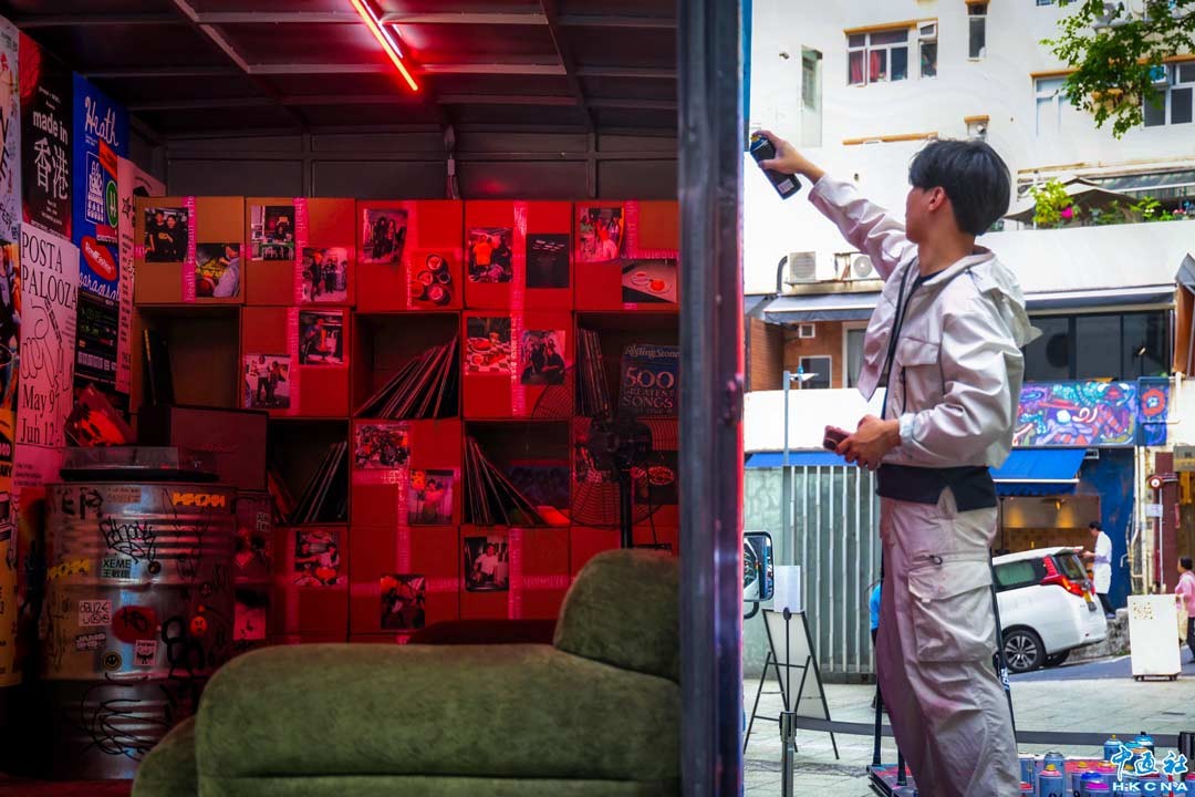 3月26日,香港最大型街頭藝術節—HKwalls在香港藝術3月舉行,本屆藝術節於3月21日至29日邀請來自14個國家的二十餘位藝術家,在中西區街頭進行為期九天的現場創作。同時,藝術節首次推出“Art on the Move藝術貨車”項目,六輛經藝術家改造的藝術貨車將成為流動展館,於三月下旬穿梭於香港各區。多位藝術家的創作筆跡遍布街頭大廈外牆,為城市景觀添上趣味及濃厚藝術氛圍。圖為藝術家在繪製藝術貨車。(香港中通社記者 鄧梓傑 攝)