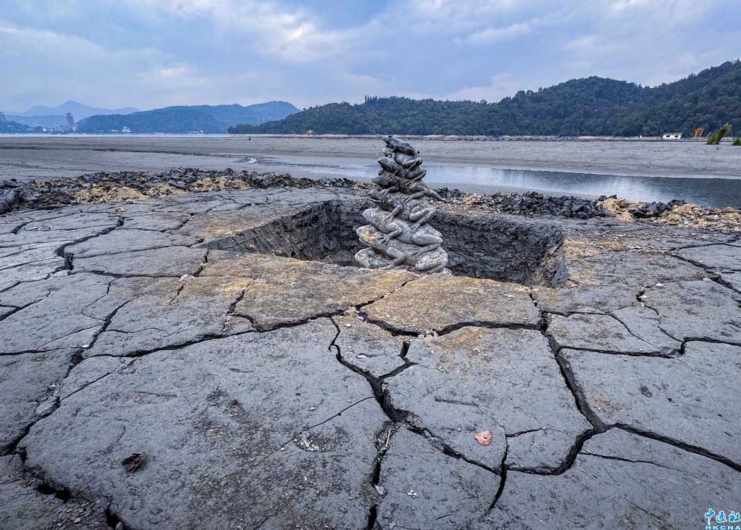 台灣今年春雨少,加上支援春耕灌溉,各地水情吃緊。南投日月潭蓄水率4月2日跌破6成、相較滿水位降逾6公尺,位於大竹湖及伊達邵間的水蛙頭步道潭邊露出大面積淤泥,甚至乾到龜裂,象徵水情的九蛙疊像已全數離水,吸引民眾到場觀看。由於水情不佳,碼頭浮排與引橋坡度明顯增加,行走動線宛如陡峭階梯,安全風險同步升高,伊達邵碼頭已部份封閉。 香港中通社圖片