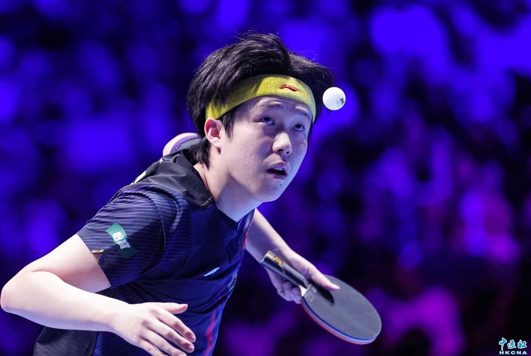 4月5日,中國隊選手王楚欽在比賽中。當日,在“2026年澳門國際乒聯男子及女子世界盃——由銀河娛樂集團呈獻”男子單打比賽中,中國隊選手王楚欽以4比1戰勝巴西選手雨果.卡爾德拉諾,晉級決賽。香港中通社圖片