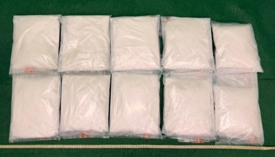 香港新聞網4月15日電 香港海關15日在香港國際機場偵破一宗行李藏毒的販毒案件,檢獲約20.6公斤懷疑氯胺酮,估計市值約830萬港元。 一名23歲男旅客15日從德國法蘭克福飛抵本港。海關人員清關時,在他的行李內檢獲該批懷疑氯胺酮,遂把他拘捕。該名被捕人士已被控一項販運危險藥物罪,於16日在西九龍裁判法院提堂。