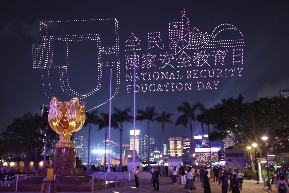 香港新聞網4月15日電( 記者 謝光磊 )4月15日晚,紫荊文化集團在香港會展中心金紫荊廣場外舉辦2026“全民國家安全教育日”大型無人機表演。2026架無人機在維港騰空昇起,以動感光影藝術演繹香港青年學生國家安全主題創意作品,詮釋國家安全的豐富內涵, 營造全民參與共同維護國家安全的濃厚氛圍。