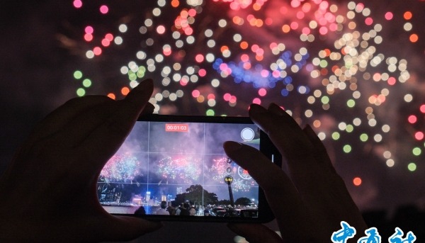 大批市民和遊客在維港兩岸觀看無人機表演
