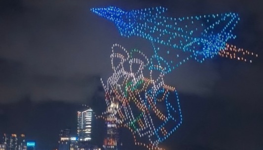 2026架無人機在維港騰空昇起,以動感光影藝術演繹香港青年學生國家安全主題創意作品