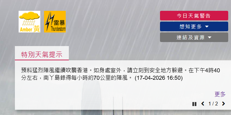 雷暴黃雨齊發 香港天文台提示或有冰雹分享到:
