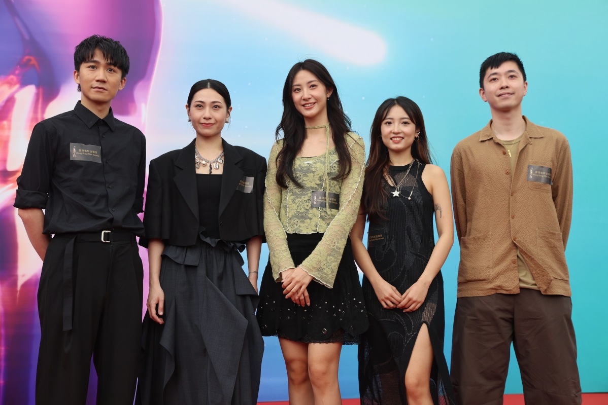 金像獎平台直播主持人(左起)吳肇軒、蔡蕙琪、趙君瑜、Ka.Lin連花、筆華棋出席拜神儀式。
