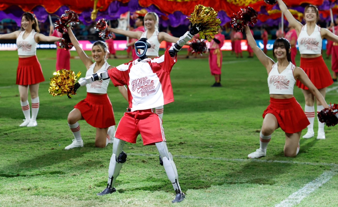香港新聞網4月17日電(記者 陳奕啟 )4月17日,香港國際七人欖球賽一連三天在啟德主場館舉行。當天在香港啟德主場館舉行開幕式。 今年亦為香港國際七人欖球賽五十周年,旅發局在開幕禮上出動曾參加央視春晚的10個國產人型機械人表演。