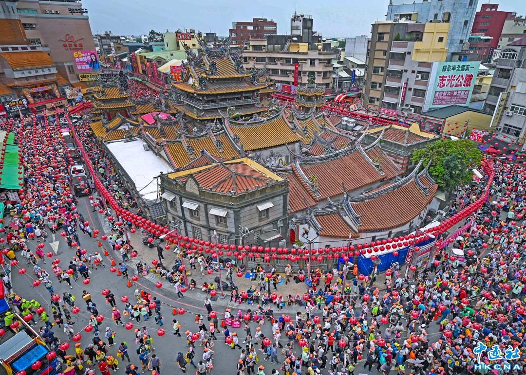 4月16日,台灣苗栗白沙屯媽祖進香團經過五天百里行程,抵達目的地雲林縣北港朝天宮,數萬人聚集廟前高喊“進喔!進喔!”的巨大呼喊聲中,神轎隊3進3出百米衝刺進廟,是白沙屯媽祖每年到北港進香的重頭戲,超震撼的場面,撼動每位媽祖信徒的心。 香港中通社圖片