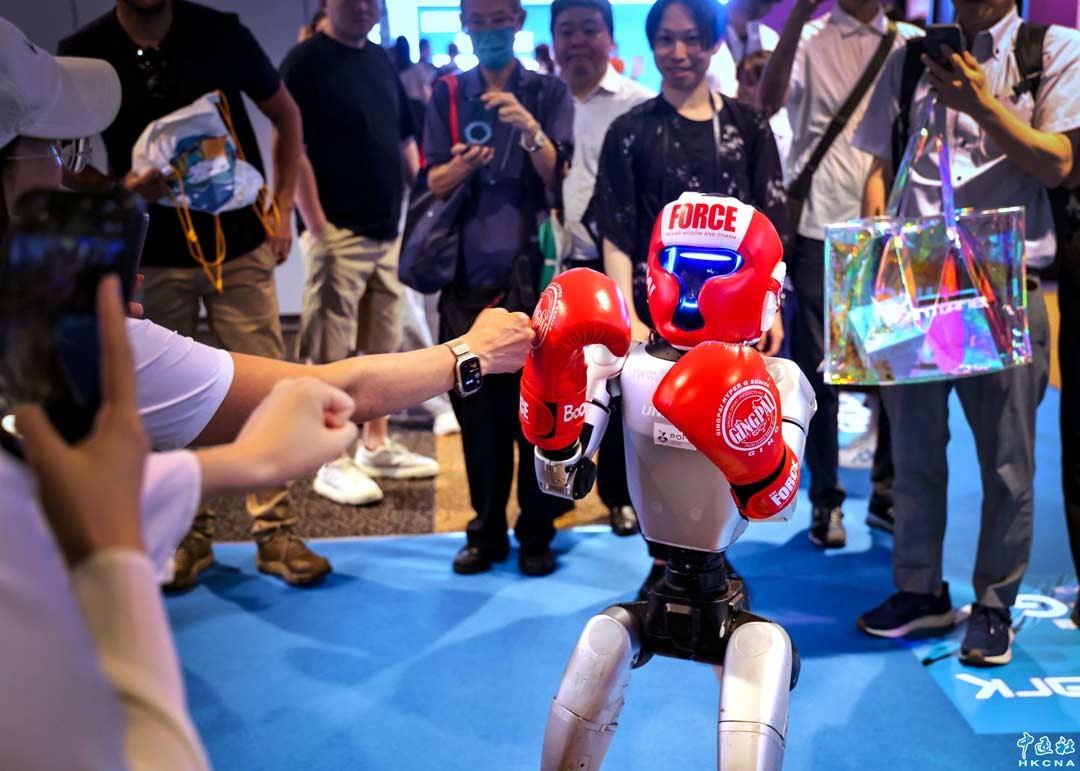 4月13日,由香港特區政府創新科技及工業局與香港貿發局合辦的“香港國際創科展”(InnoEX)聯同“春季電子產品展”在香港會議展覽中心舉行。展會首次設立貫通雙展的“RoboPark”機器人展區,匯聚全球人形機器人出貨量前五強中的四家企業——智元機器人、宇樹科技、優必選及眾擎機器人,突顯香港作為國際創科平台的吸引力。圖為“RoboPark”展區內宇樹機器人展示。(香港中通社記者 鄧梓傑 攝)
