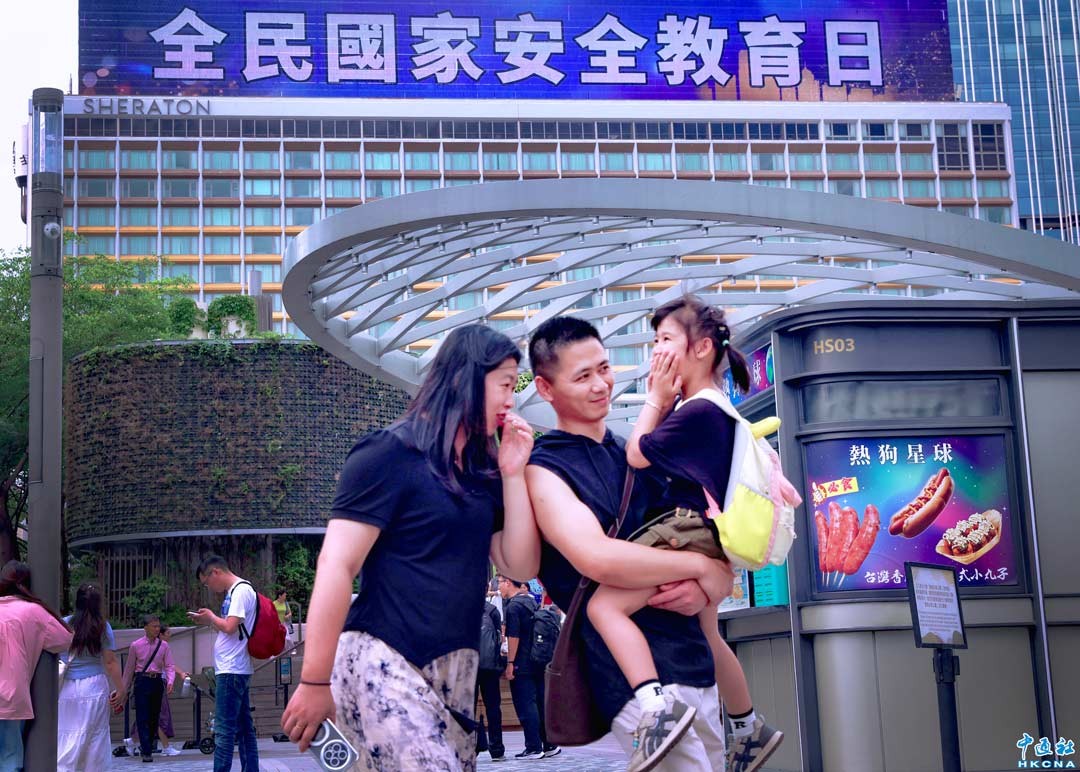 2026年4月15日將迎來第十一個“全民國家安全教育日”。4月14日,香港維多利亞港兩岸多座標誌性建築打出“全民國家安全教育日”、“主動對接‘十五五’規劃,堅持統籌發展和安全”等巨幅標語,迎接“全民國家安全教育日”。(香港中通社記者 謝光磊 攝)
