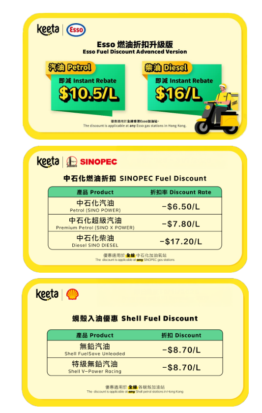 香港新聞網4月24日電 今年初以來,國際油價持續攀升,送遞員的日常營運成本顯著上升。為紓緩送遞員負擔,香港外賣平台Keeta宣布與油公司提高優惠力度,全面升級Keeta送遞員專屬加油優惠,Esso汽油折扣提升 26%,連同蜆殼及中石化現有優惠,為車手提供更有力的支援。
