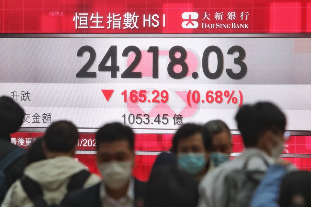 香港中通社1月17日電 香港股市17日反覆回吐,恆生指數收市跌165點或0.68%,收報24218點;大市全日成交1053.45億港元。