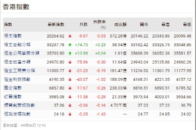香港新聞網1月18日電  香港股市18日反覆偏軟,恆生指數18日中午收報24183點,跌34點或0.1%,成交額636.5億港元。