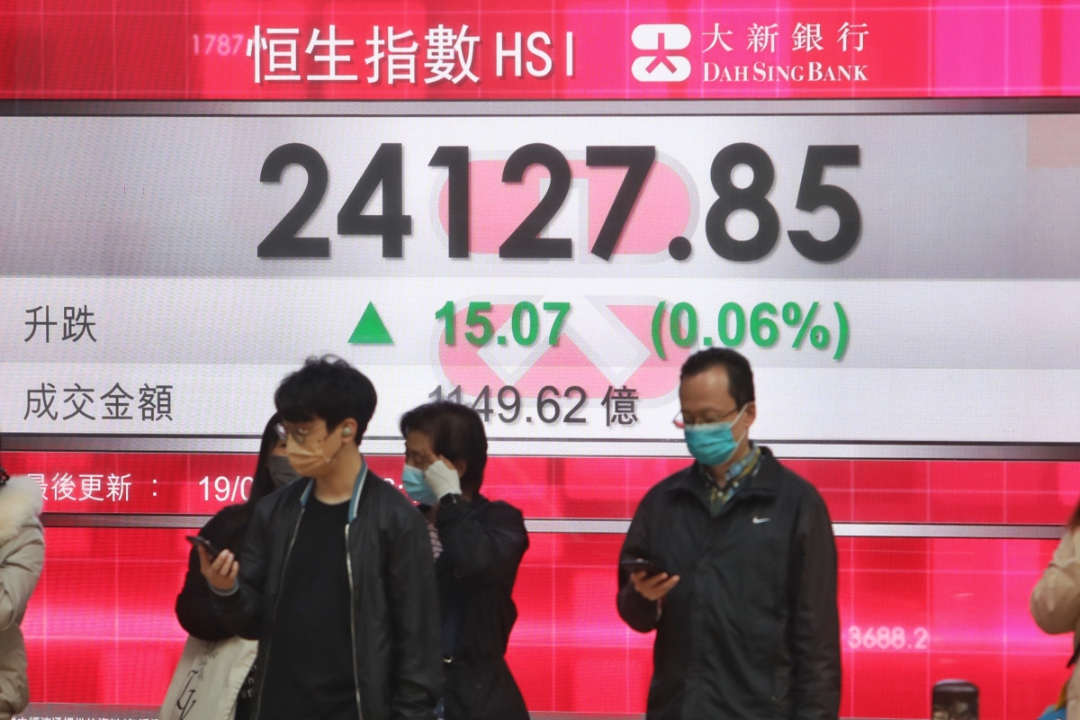 香港中通社1月19日 電美國十年期債息再升,累美股急挫,港股24000點關失而復得。香港恆生指數19日收報24127點,微升15點或0.06%,國指及科指連跌五日。
