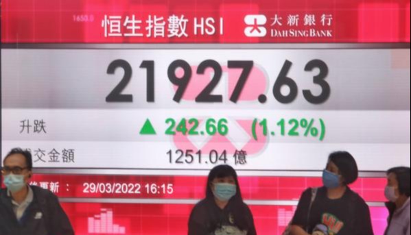 香港中通社圖片 當日,恆指先高開11點,報23818點,輕微向上之後掉頭向下,曾跌299點,低見23507點;午市後跌幅收窄,臨近尾市維持250點跌幅。大市成交額1256.99億港元。 國企指數收報8210點,跌81點或0.98%;恆生科技指數收報5291點,跌91點或1.71%, 科網股個別發展,京東集團跌3.2%,小米集團跌1.3%,騰訊控股和美團均跌約0.6%,阿里巴巴升1.3%。 教育股顯著反彈,中教控股抽升43.3%,希望教育及新高教集團各升23.2%及15.5%。 內房股走弱,龍光集團跌11.4%,融創中國及合景泰富集團均跌4.5%,中國恆大跌4%。 香港證券商第一上海首席策略分析師葉尚志表示,港股仍未度過短期關鍵時間窗口,加上港股通仍未重開,令港股盤面穩定性有所轉弱。值得注意的是重要觀察指標美元DXY指數突破97 ,創新高,顯示全球資金面進入流竄狀態,金融市場整體的波動性仍有加劇的跡象,應繼續留神注視。(記者 李明珠) 【編輯:陈卓仪】