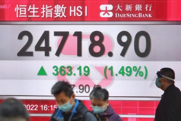 香港中通社圖片 國企指數收報8678點,升150點或1.77%;恆生科技指數報5616點,升126點或2.3%。 科網股造好,嗶哩嗶哩升8.7%,快手升5.5%,阿里巴巴升3.4%,美團升2.5%,騰訊控股升1.3%。 濠賭股跑出,金沙中國有限公司彈6.8%,是當日表現最好藍籌股;永利澳門升6.3%,銀河娛樂升5.3%,澳博升3.1%。 風電股全線回落,被指計劃分拆業務在港上市的華潤電力跌9.2%,大唐新能源跌6.4%,中廣核新能源挫4.1%。 香港證券商第一上海首席策略分析師葉尚志認為,烏克蘭緊張局勢有緩和跡象,是刺激全球股市反彈回升的因素。接下來,港股仍有可以喘氣的時間,相信如果有正面消息配合,恆指有進一步上試25000點的潛在可能。 香港股票分析師協會副主席郭思治卻認為,港股自本年首季開始整體表現已經不錯,但在交投偏少的情況下,暫時難抱太多向上的憧憬。(記者 李明珠) 【編輯:李明珠】
