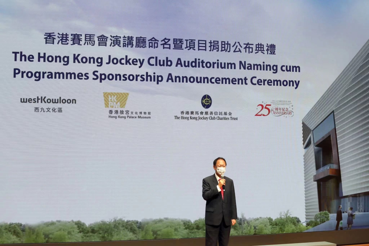 香港故宮是西九文化區管理局與故宮博物院的合作項目,由香港賽馬會慈善信託基金撥捐35億港元成立。香港故宮於2019年3月動工,工程並於 2021年12月如期完成,並預計於2022年7月對公眾開放。馬會同意延續對香港故宮的支持,運用部分捐款支持香港故宮在未來九年的部分展覽和教育工作,在本地以至世界各地推廣中華文化,實現國家《十四五規劃綱要》明確支持香港發展成為中外文化藝術交流中心的願景。 行政長官林鄭月娥表示,全賴各個團隊上下一心、努力拼搏,即使受到過去兩年多疫情影響,香港故宮項目不單沒有超支或延誤,馬會就項目的慈善捐獻更餘下約2億6千萬港元之多,並在今天由政府和馬會聯合公佈,將撥作香港故宮日後的營運經費,特別投放在展覽及教育活動上。林鄭月娥說:“香港故宮將以香港所長,服務國家所需,積極與國際文化機構進行交流和合作,將中華優秀傳統文化向世界傳播,並以文明互鑑,增進國際友誼,展示中國文化建設的成就。”