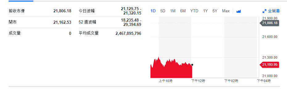香港新聞網6月13日電  香港恆生指數13日半日跌612點或2.81%,報21193點。