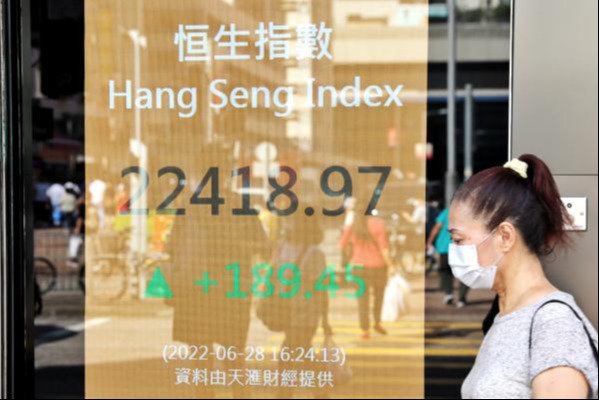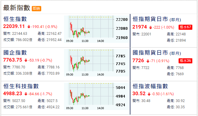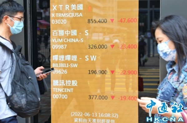 香港新聞網6月28日電 港股27日升約500點後,今早回吐,大市曾跌逾200點,一度跌穿22000點關口。恒生指數半日跌190點,報22039點。