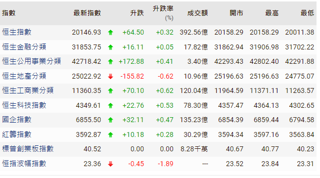 恒生科技指數升0.5%,報4349點。國企指數升0.47%,報6855點。