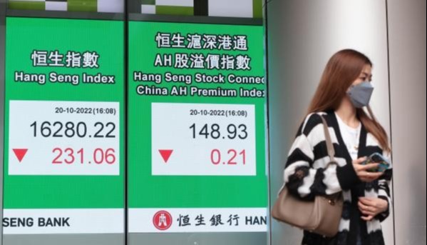 香港新聞網9月14日電 美國上月CPI意外升至8.3%,市場憂慮聯儲局將繼續大幅加息,拖累美股三大指數創兩年來最大跌幅,港股今14日早上曾急跌逾五百點。午間恆生指數收市報18834點,跌492點或2.55%。半天大市成交額為521.15億港元。