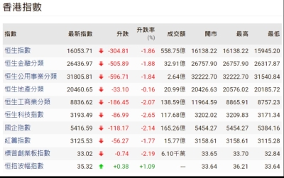 【港股半日速報】恆指半日跌492點