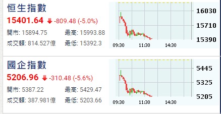 【港股半日速報】恆指半日跌347點
