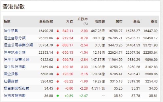 【港股半日速報】恆指半日跌268點 科技股領跌