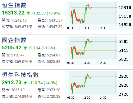 香港新聞網10月25日電 香港股市25日表現反覆,恆生指數中午收市反彈132點,報15313點,成交849.67億港元。