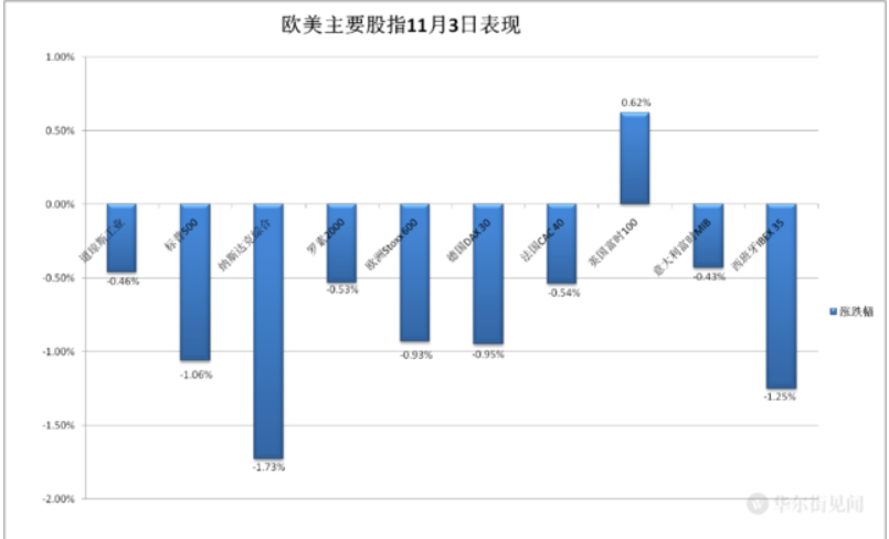 香港新聞網11月4日電 美聯儲主席鮑威爾憑一己之力砸崩美股。美東時間3日,美股三大指數連續第四日集體收跌,與之相對應的是,熱門中概股總體連續三日跑贏美股大盤 ,中概ETF KWEB和CQQQ分別收漲3.4%和2.1%,拼多多收漲6.3%。 繼美聯儲主席鮑威爾周三公佈加息後,周四三大美國股指集體低開,納斯達克綜合指數跌近2%,標普500指數跌超1.6%,道瓊斯工業平均指數跌超420點、跌1.3%。午盤納指和標普跌幅收窄,道指不止一次轉漲,但尾盤美股跌幅又擴大,道指轉跌。繼續領跌的納指收跌1.73%,10342.94點,連續兩日創10月14日以來收盤新低。