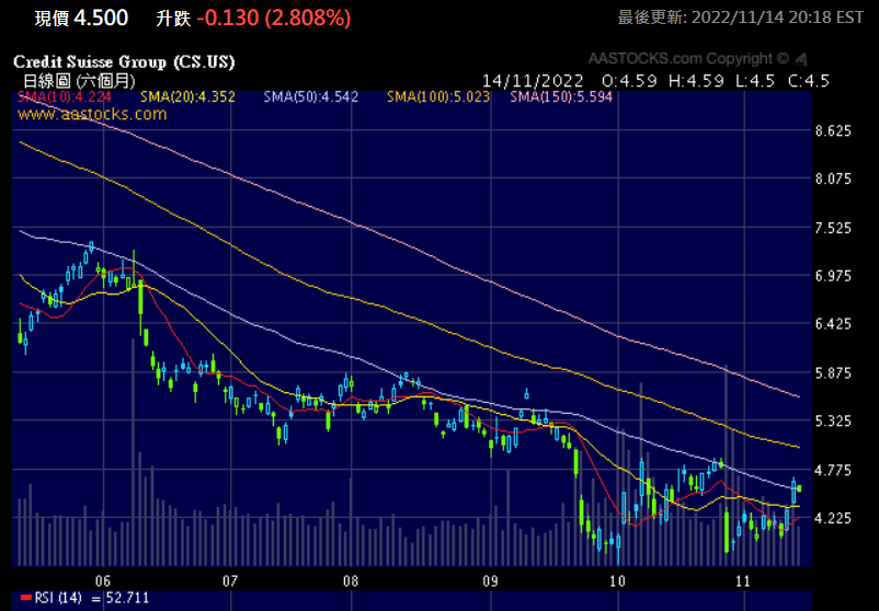 香港新聞網11月15日電 被傳快破產的瑞信(CSUS)正在進行全面改革。瑞信已開始裁減亞洲地區的高級銀行職位,包括三名投資銀行和金融部門的董事總經理。 最近一段時間,圍繞著瑞信是否會破產,是否將成為下一個雷曼兄弟,以及是否會導致世界重演2008年金融危機的疑問不絕於耳,期間瑞信的任何發聲,都被憂慮的市場看來是欲蓋彌彰。過去一年,瑞士信貸一直受到投資銀行業務收入低迷、撤出俄羅斯業務的損失以及與一系列違反法規和風險管理失敗相關的訴訟成本的困擾,其中最引人注目的是 Archegos 對衝基金醜聞。 人們不相信瑞信CEO的保證,市場向瑞信報以“股債雙殺”。瑞信股價今年以來已下跌超過60%,五年期信用違約掉期指數(CDS)價格目前約為293個基點,高於今年初約55個基點的水平,處於歷史最高水平。 好在,上周全球股市的上漲行情讓瑞信得以有喘息的機會,而且,瑞信也正在內部進行積極的改革,以期在這難關時期能平穩過渡。