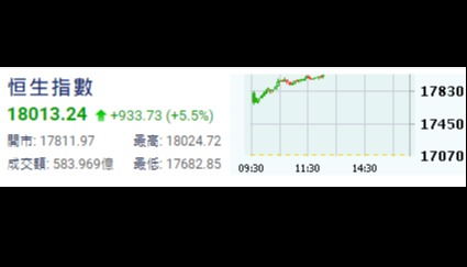 當天早上,恒指低開63點後回升,曾高見高見18376點。