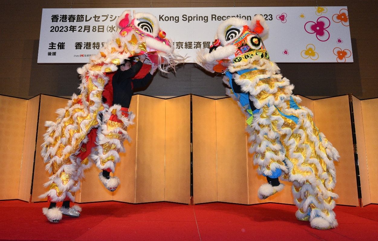 現場有舞獅助興,慶祝新年 她續說:“展望未來,我們已經準備就緒讓香港重返國際舞台。我們誠意邀請大家和企業一起來展開旅程。” 春節酒會由香港駐東京經濟貿易辦事處主辦,並獲投資推廣署、香港貿易發展局和香港旅遊發展局支持。為推介香港的藝術及音樂人才,香港駐東京經濟貿易辦事處邀請了香港的演奏團“香港天籟敦煌樂團”在酒會中演出。 【編輯:黃璇】