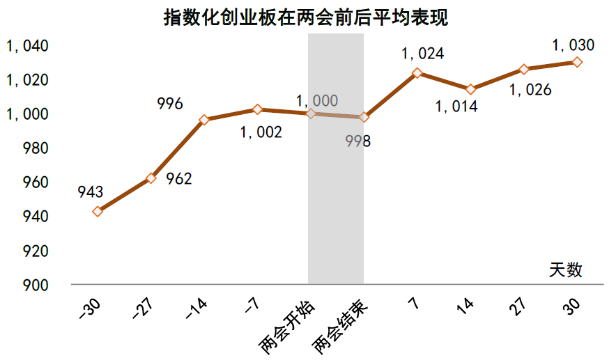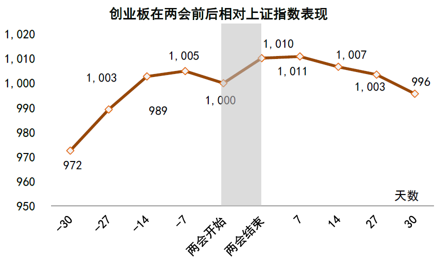 資料來源:Wind,中金公司研究部 圖表6:創業板在兩會前表現通常較好,但兩會之後多表現平淡