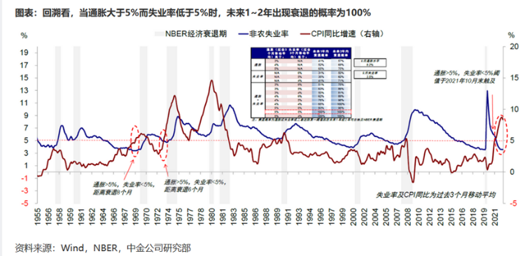 歷次加息引發的危機 美國埃弗科國際戰略和投資集團央行策略主管克里希納·古哈近日指出,美國是驅動全球“加息潮”的決定因素,“美聯儲正在設定加息步伐,并通過外匯市場將壓力傳遞給其他央行”。 自今年美聯儲啟動加息周期以來,美元對其他貨幣匯率持續走高,并在9月美聯儲加息節點前後出現加速。美國《華爾街日報》報道稱,衡量美國與主要貿易貨幣匯率的洲際交易所美元指數已上漲14%,是該指數自1985年推出以來美元最強勢的一年。歐元、日元和英鎊對美元匯率均跌至數十年低點,新興市場貨幣也遭受重創。 世界銀行警告稱,全球範圍的“加息潮”將把全球經濟推向衰退,尤其是發展中國家將面臨一連串的金融危機風險和“持久傷害”。 這樣的傷害對很多國家來說是承受不住的。在七國集團(G7)的央行中,加拿大率先停止了遏制高通貨膨脹的持續加息。加拿大銀行(央行)3月8日宣佈,把作為基準利率的隔夜利率誘導目標維持在與1月相同的4.5%。歐央行多名官員對於加息亦出現內部分歧。 加息的盡頭是經濟衰退和金融危機 美聯儲的不斷加息,已引發了很多經濟學家的擔憂。研究機構TS Lombard經濟學家Steven Blitz週三(8日)接受訪問時表示,恐怕要到美國經濟衰退或發生金融危機後,聯儲局才會停止加息。 Blitz強調,在沒有經濟放緩的情況下,聯儲局缺乏明確的加息上限。當局不知道最高利率是多少,因為他們不知道當經濟無衰退時,通脹會在何處穩定下來。如果聯儲局繼續推進息口向上,聯邦基金利率可能提高至6.5%。他預期美國將會出現經濟衰退,失業率至少會升至4.5%,最終可能會高達5.5%。屆時聯儲局將停止加息,但已無法扭轉局面。 最近一段時間可以看出,投資者對全球經濟增長的樂觀情緒跌至歷史新低,對經濟衰退的恐懼大幅飆升。 美國今年以來的激進加息以及需求不行的情況下,增長最終放緩和走向衰退。從圖中我們可以看到,當通脹大於5%而失業率低於5%時,未來1~2年出現衰退的概率為100%,目前美國正是處於這樣的現狀,9月通脹高達8.2%,失業率降至3.5%。