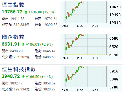 【港股半日速報】恆指13日半日彈436點