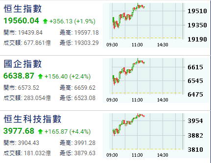 【港股半日速報】恆指17日半日升356點
